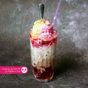 1:1 - Sweet dessert prepared with milk, noodle, jelly, fruit & basil seed