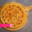 Topped with bread overloaded chicken extra cheese capsicum tomato mushroom black olive sausage meatball & tandoori masala