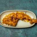 1:1 - Spicy dish prepared by stir-frying marinated chicken in a mixture of spices & chili