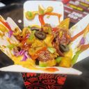 1:1 - Savory box prepared with meatball, chicken, sausage, fries & special sauce