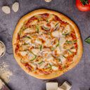 Topped with mozzarella cheese, chicken, capsicum, green chili