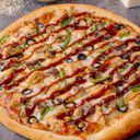 Topped with mozzarella cheese, chicken, capsicum, mushrooms, bbq sauce