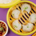 5 pcs - Steamed dumplings filled with minced chicken & served with chili oil