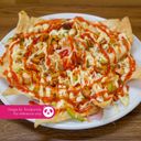 1:1 - A delightful plate of crispy tortilla chip topped with cheese sauce, salsa & seasoning