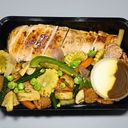 Pan-roasted chicken breast (140g-Raw), Chicken Sausage (20g), Mushroom (10g), Baby Corn (20g), Papaya (70g), Green Capsicum (20g), Long Bean (15g), Carrot (30g), Grated Garlic (5g), Onion (15g), Oregano (2g), Black Pepper (2g), Salad Dressing (30g), Mustard oil & other essential Salad Ingredients