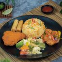 1:1 - Consists of fried rice, vegetable, special fried chicken, chicken curry & spring roll