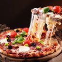 Topped with beef pieces, cheese, vegetables, medium thin crust & other pizza ingredients