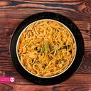 A savory dish featuring thin, long str&s of pasta often served with various sauces