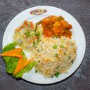 1:1 - Consists of chicken fried rice, masala chicken, sweet & sour prawn & mixed vegetable