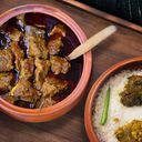 the rice can be thinner .the change daal needs more upgrading . don't mix broken fragments of beef bones with it. the mezzani ghost was soon fine and better
