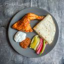 Quarter grilled chicken with bread, pickles & garlic sauce