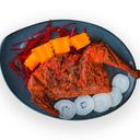 1:1 - Prepared with whole desi chicken marinated with yogurt, chili, lemon juice, ketchup, chili flakes, garam masala & spice