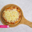 Topped with wheat flour, tomato sauce, mozzarella cheese, olive oil, oregano, salt & basil