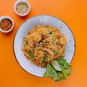 1:1 - Stir fry flat rice noodles with choice of prawn or chicken in tom yum chili paste, green & peanut