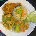 1:1 - Consist of fried rice, mixed vegetable, chicken curry, fried chicken & salad