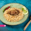 Traditional beef tehari prepared with tender beef cube, aromatic rice, green chili & mustard oil