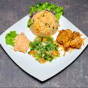 1:1 - Consists of fried rice, indian tandoori chicken, vegetable & coleslaw