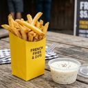 French fries with ranch dip on the side and cooling strawberry lemonade as the perfect companion.