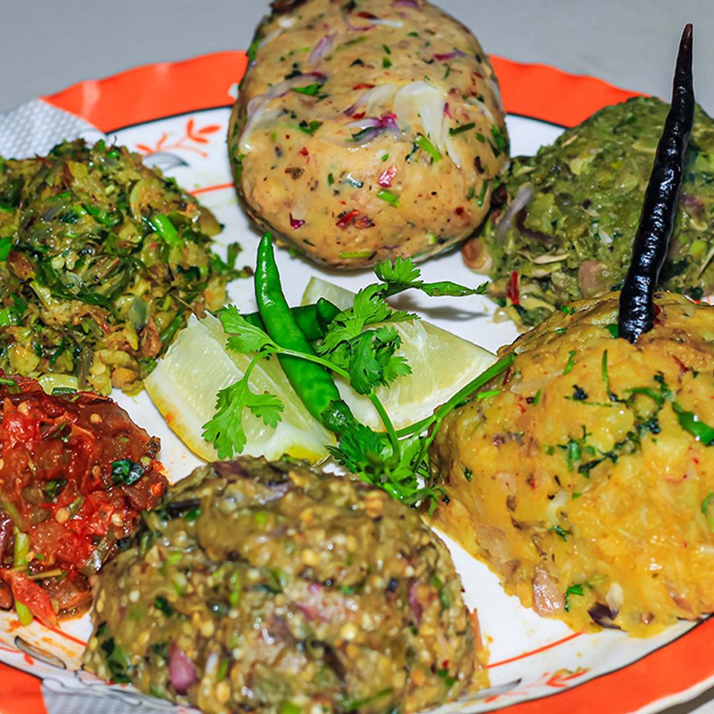 1:1 - Prepared with dried taki fish, mustard oil, mustard seed, sauteed onion, garlic & green chili