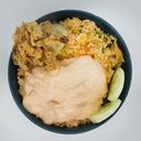 Savory rice topped with grilled meat, fresh vegetable & tangy barbecue sauce