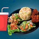 1:1 - Consists of fried rice, crispy fried chicken, vegetable & soft drinks