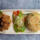 1:1 - Consists of a bbq-style platter with fried rice, chicken & fresh vegetables