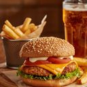 1 pc – Crispy Chicken Burger Prepared with lettuce, onion, tomato, crispy chicken patty & special sauce, served with fries and soft drink.