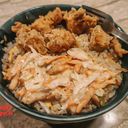 1:1 - Tender chicken crumbs atop fluffy rice, creating a deliciously crispy