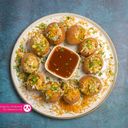 1:1 - Prepared with crispy hollow shell, spicy potato mash, tamarind water & chickpea