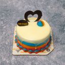 350 gm - Special Vanilla sponge , inside brown cream , topping decorate by caramel honey , Besides Almond Slice also chocolate Bar
