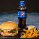 Consists of smoky beef cheese burger, fries & 250 ml pepsi