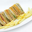 3 layered sandwich filled with smoked chicken, beef rasher, fried egg, vegetables, cheese & mayonnaise in brown bread. Served with french fries