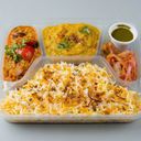 1:1 - Consists of jeera polao, chicken tikka masala, dal butter fry, green chutney & onion salad