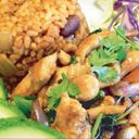 1:1 - Authentic thai style spicy chicken served with organic rice & beans