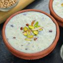 A regal, chilled rice pudding. Slow-cooked with cardamom & coarsely ground rice for a uniquely creamy texture. Served in a 250ml bowl, topped with nuts. A perfect sweet, aromatic finale.