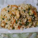 Polao rice cabbage capsicum Thai leave Julian chicken prawn soya sauce onion green chilli