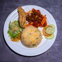 Consists of fried rice, chicken chili onion & 1 pc crispy fried chicken