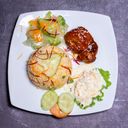 Consists of fried rice, vegetable & 1 pc bbq chicken