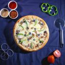 Topped with base sauce, cheddar, mozzarella cheese, chicken, capsicum, mushroom & olive
