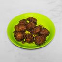 1:1 - Thin slices of boneless mutton are marinated, usually tenderized & fried in oil