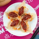 Delicate open-faced dumplings wrapped in flavorful nori, filled with a savory blend of seasoned meat and seafood, steamed to perfection.