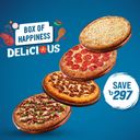 A combination of 3 regular sized mouthwatering pizzas including Chicken Dominator, American Fav. Feast & Chicken Keema Dopeyaja.
