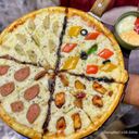 A unique pizza topped with four different flavor in one, chicken, beef & vegetable