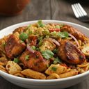 -Juicy Penne pasta loaded with tender chicken and a hint of spice to satisfy your cravings.